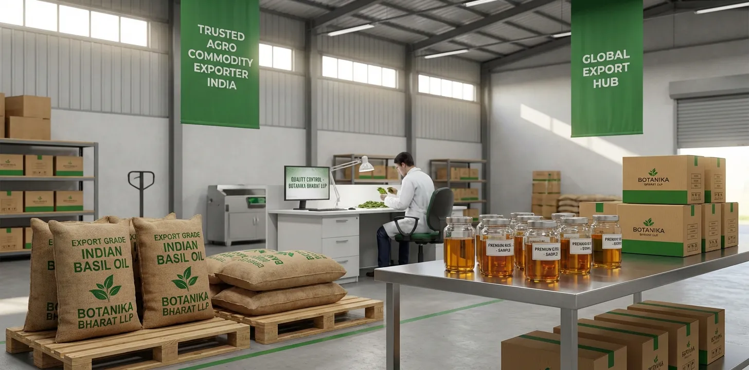 We are an Indian basil oil exporter and agro commodity exporter India committed to processing and export excellence. Our commercial invoice, packing list, COA where applicable, and documentation are designed so that importers have what they need for payment and for their own records.