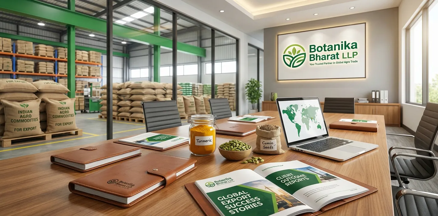 Global buyers and procurement teams look for proof: who has the supplier worked with, what were the outcomes, and can they deliver at scale with full documentation. At Botanika Bharat LLP we answer these questions through documented success stories and partnership examples. We serve importers and distributors across North America, Europe, the Middle East, and Asia with spices, herbs, ashwagandha, giloy, turmeric, ginger, black pepper, cardamom, cumin, coriander, rice, health powders, oleoresins, essential oils, and hundreds of agro commodities. Every case study we share is grounded in real consignments, real documentation, and real relationships. Our office is at Office No-18, 1st Floor, Ramavihar, Infront of Shiv Enclave, Near Shimla Bahadur, Fulsunga, Ward No-01, Rudrapur, Dist- U S Nagar (Uttarakhand) Pin-263153. Contact: Mobile +91 9666668428, Landline +91 5944 369845, Email [email protected] and [email protected]. Business hours: Monday to Saturday, 10:00 AM to 7:00 PM.