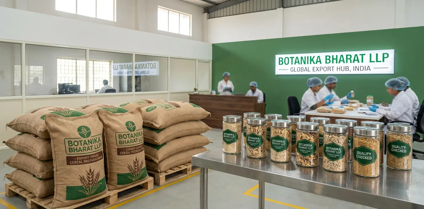 We are an Indian cereal preparations exporter, bulk beverage supplier, agro commodity exporter India, and FMCG raw material supplier committed to excellence in supply. We invite you to partner with Botanika Bharat LLP for cereal preparations with full quality and documentation you can trust.