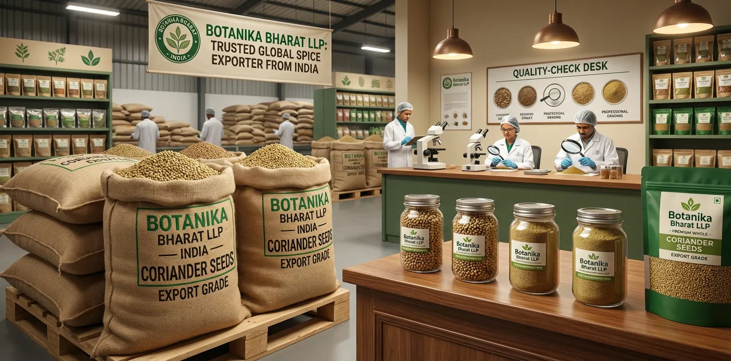 We are an Indian spice exporter, bulk coriander seeds supplier, agro commodity exporter India, and FMCG raw material supplier committed to excellence in supply. We invite you to partner with Botanika Bharat LLP for coriander seeds (whole, powder) with full quality and documentation you can trust.