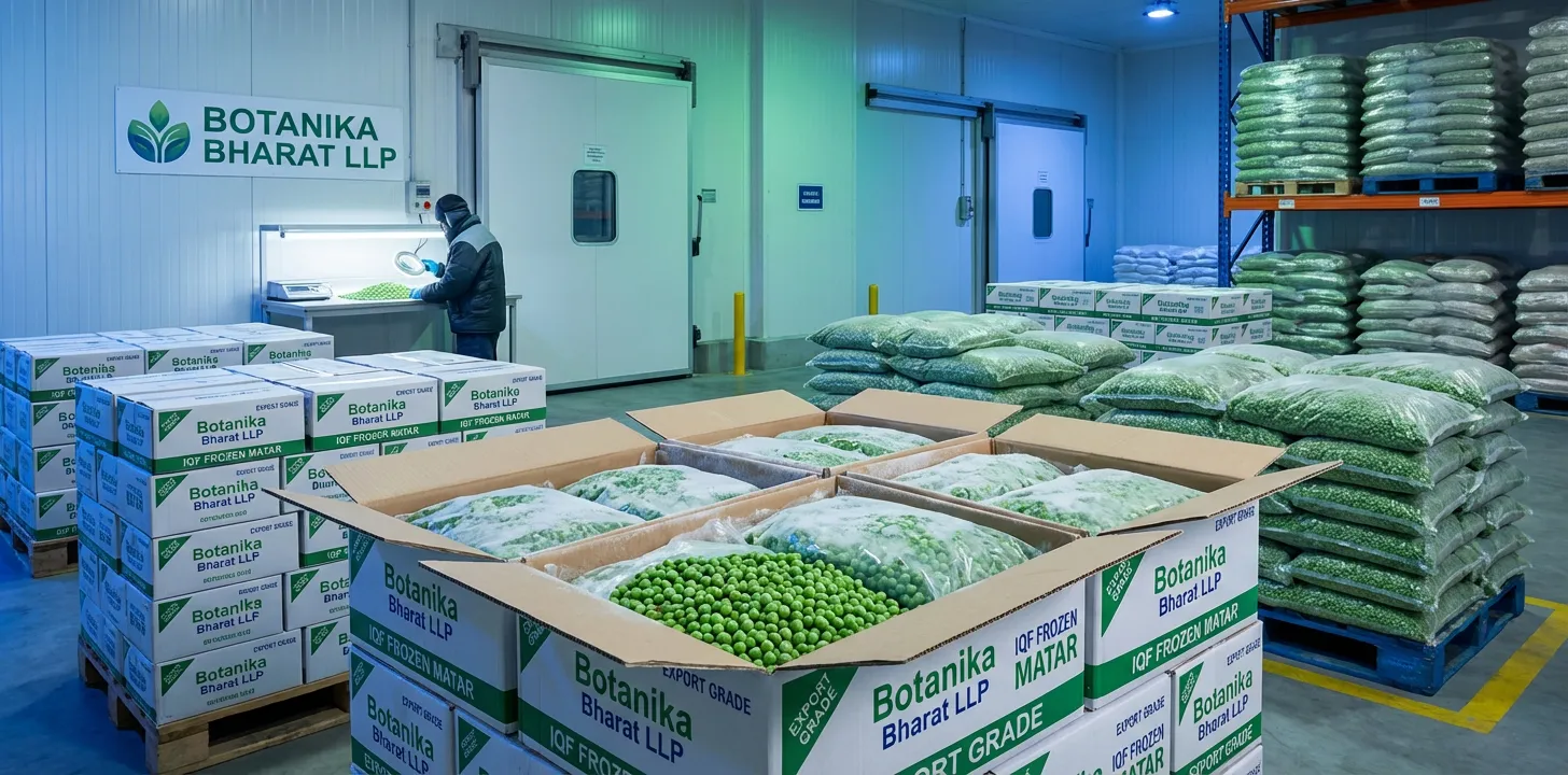 Botanika Bharat LLP brings the essence of Indian frozen matar (IQF frozen green peas) to the world through export. India’s fresh and frozen produce heritage is built on quality and trust; today we carry that legacy with reliable supply of IQF frozen matar and full documentation. Elegance in our context means clarity: clear specifications, clear COA, and clear documentation so that buyers know what they are buying, what quality they get, and how to clear customs and pay. This Frozen Matar page is written for importers, distributors, bulk buyers, FMCG manufacturers, food and foodservice companies, traders, and government or institutional buyers who need frozen matar with quality and documentation they can trust. We have structured the content so that you can quickly find what you need: our product (IQF frozen matar), our approach to quality and compliance, and how we help buyers find the best quality material.