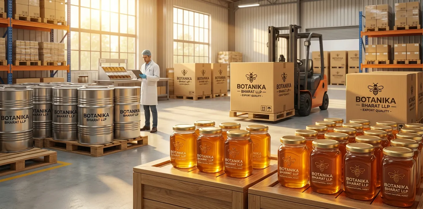 Packaging and Global Logistics for Bulk Honey Botanika Bharat LLP