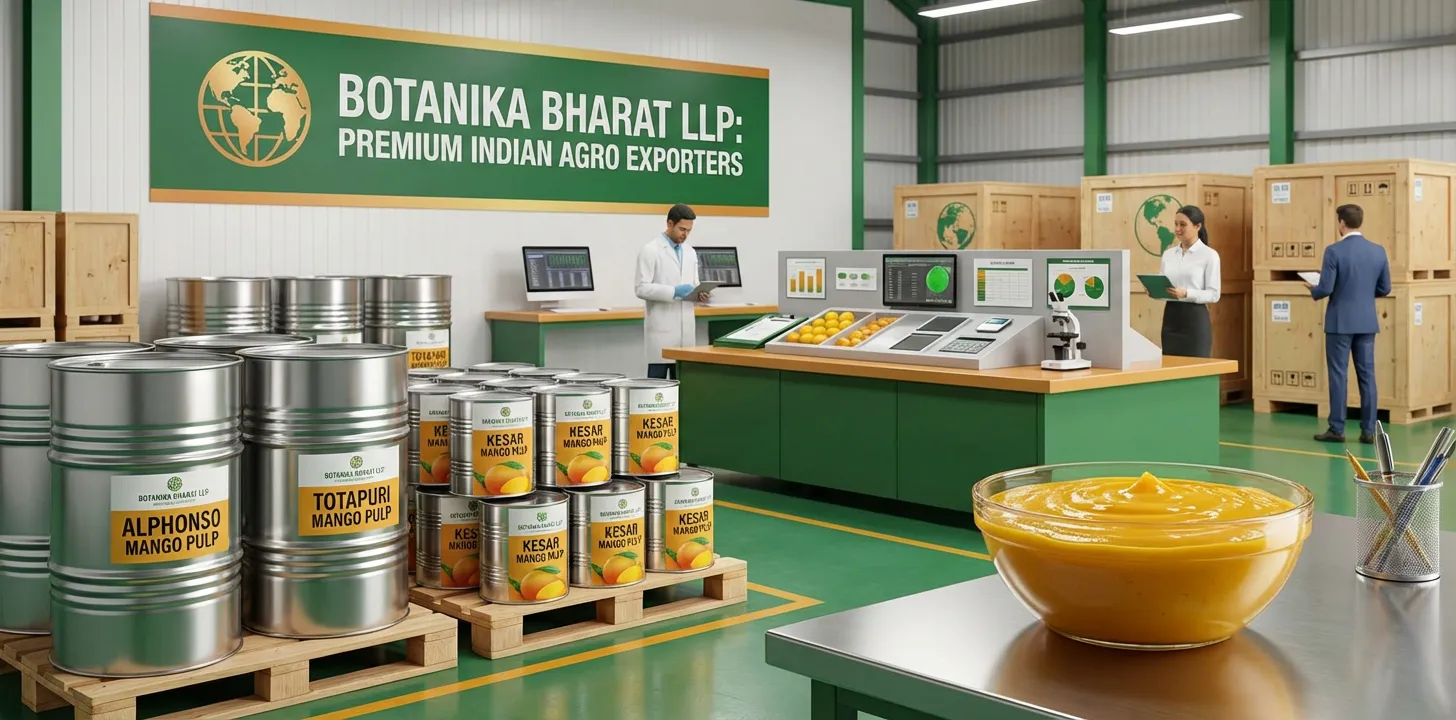 Botanika Bharat LLP supports India’s global export leadership as a trusted Indian mango pulp exporter, bulk mango pulp supplier, agro commodity exporter India, and FMCG raw material supplier. India is a leading producer and exporter of mango pulp. We contribute to this leadership by delivering reliable supply of Indian mango pulp—Alphonso mango pulp, Totapuri mango pulp, Kesar mango pulp, aseptic mango pulp—with COA and full documentation. This Mango Pulp page is structured so that buyers and importers can find us when they look for Indian mango pulp exporter, bulk mango pulp supplier, Alphonso mango pulp, Totapuri mango pulp, Kesar mango pulp, aseptic mango pulp, buy mango pulp from India, organic mango pulp exporter, agro commodity exporter India, FMCG raw material supplier—and when they look for mango pulp HS code 2007 91 00, APEDA, phytosanitary, and related terms.